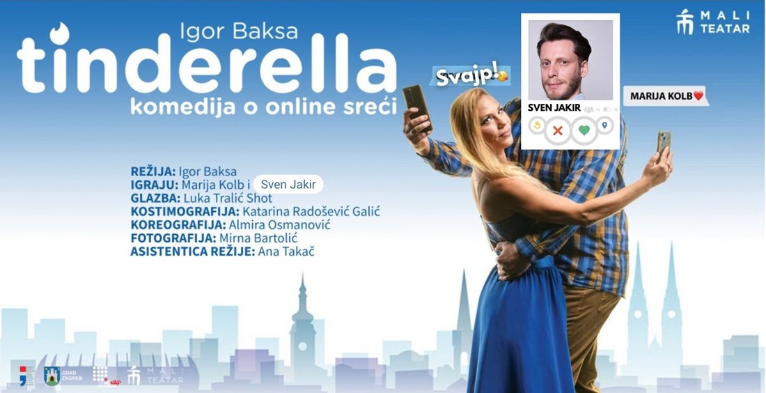 Predstava Tinderella u dvije je sezone osvojila srca publike diljem Hrvatske. Predstava u kojoj se partneri mijenjaju lako kao na aplikacijama za ljubavne spojeve, ulazi u svoje novo izdanje! Glumici Mariji Kolb u ovoj se suvremenoj bajci za odrasle pridružuje kazališni šarmer Sven Jakir. Uz pregršt živopisnih likova u koje se glumci vješto transformiraju, iskre strasti koje frcaju između njih zagrijat će svačiju maštu i – srce.