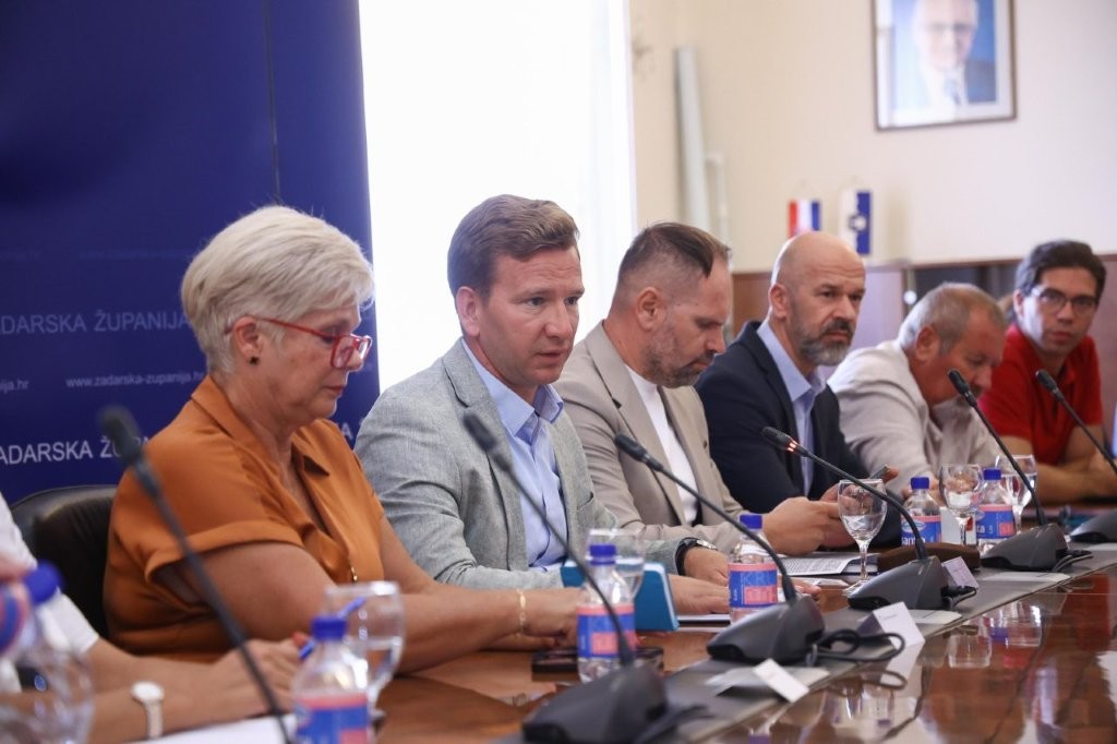 U Domu Zadarske županije održan je radni sastanak predsjednika Uprave Jadrolinije Roberta Blažinovića, člana Uprave Marka Novoselića, ravnateljice Agencije za obalni linijski pomorski promet Paule Vidović, župana Josipa Bilavera sa suradnicima, predsjednika Otočnog sabora Denisa Barića, i načelnika otočkih općina: Pašman - Krešimir Ćosić, Preko - Jure Brižić, Sali - Zoran Morović i Kali - Bruno Mišlov te pročelnice UO za gospodarstvo, obrtništvo i razvitak otoka Grada Zadra Grozdane Perić