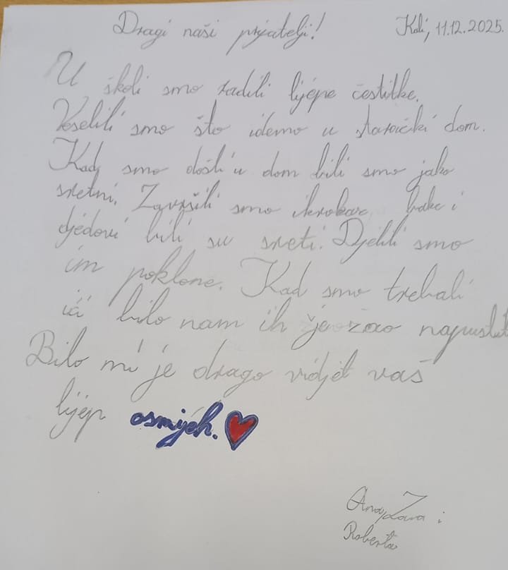 Djeca su izvela prigodan program, pjevali su, svirali, plesali, uz učiteljicu Ines Kolega i odgojiteljice vrtića radovali se druženju sa našim korisnicima. Predivna atmosfera, puna topline i dječjih osmjeha.