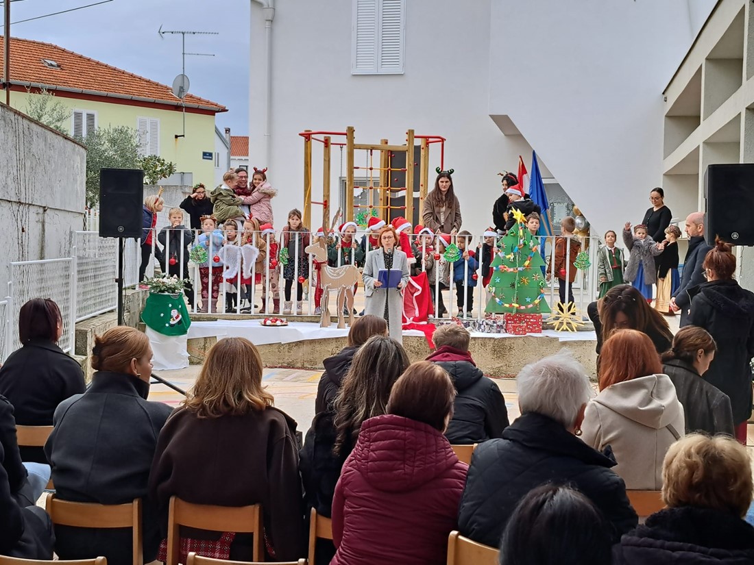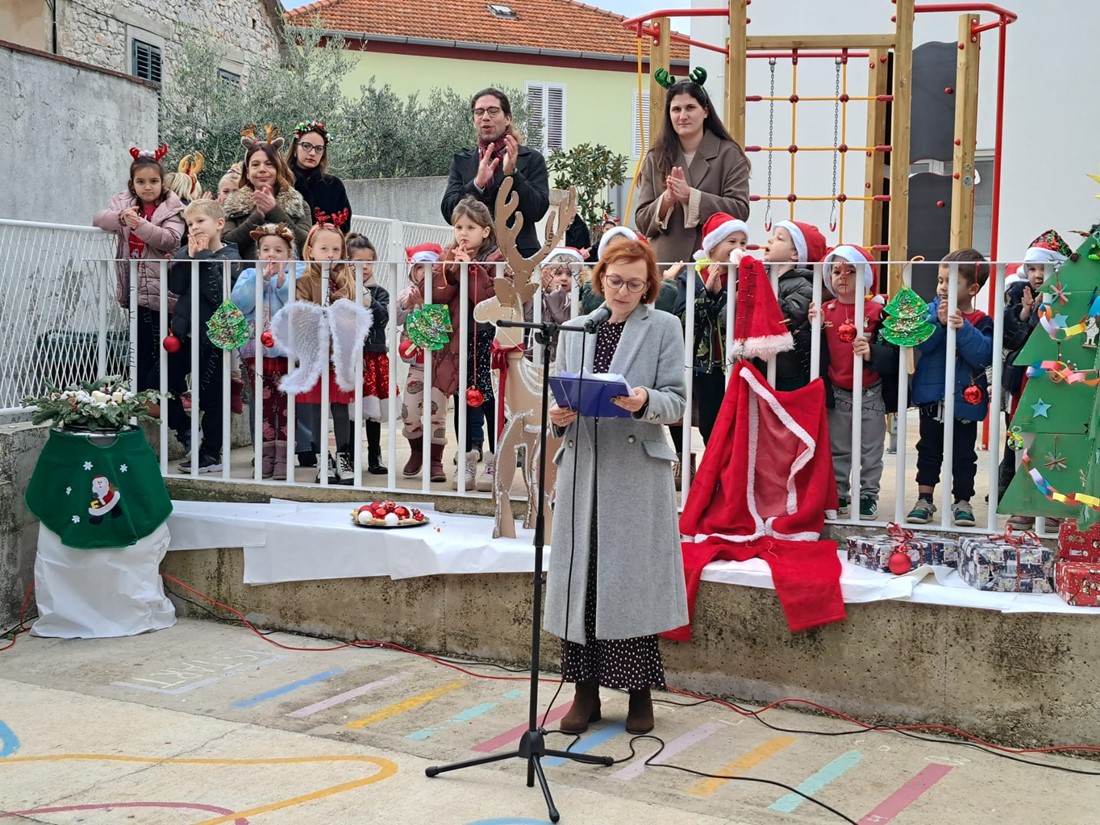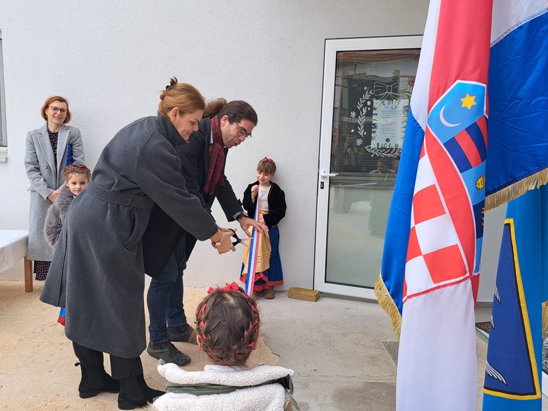 Podsjetimo, rekonstrukcija je obuhvatila tlocrtnu površinu ulaznog dijela postojeće građevine i 'stana liječnika' na I. katu stare zgrade, u kojim prostorima su izvedeni novi sadržaji i to: - ulazni hal s unutrašnjim stubištem za kat; - nova učionica za djecu predškolskog uzrasta, s wc-om, predulazom i terasom.