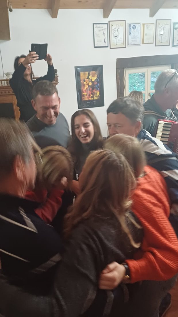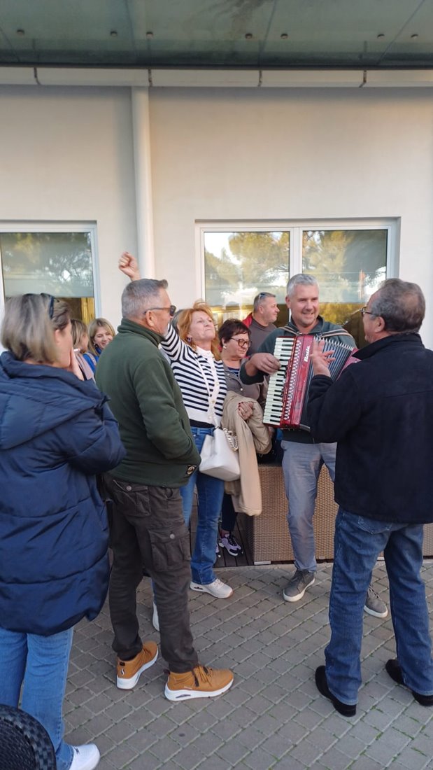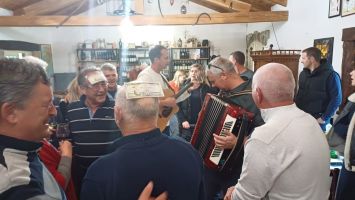 Kasnije odlazak u Gračišće, posjet OPG-u Bažon uz prigodni program i ručak, gdje su ih domaćini primili ne samo kao prijatelje, nego gotovo kao članove obitelji priča Dario Mišlov, predsjednik udruge. Uz pratnju braće Ivoš na gitari i harmonici, krenula je vesela pjesma članova udruge u kojoj su im se pridružili i domaćini OPG-a Bažon. Dojmovi su bili fenomenalni, degustiralo se i kupovalo vino, ulje i rakije, a vesela atmosfera uz pjesmu i ples nastavila se dugo u noć po povratku u hotel u aperitiv baru.