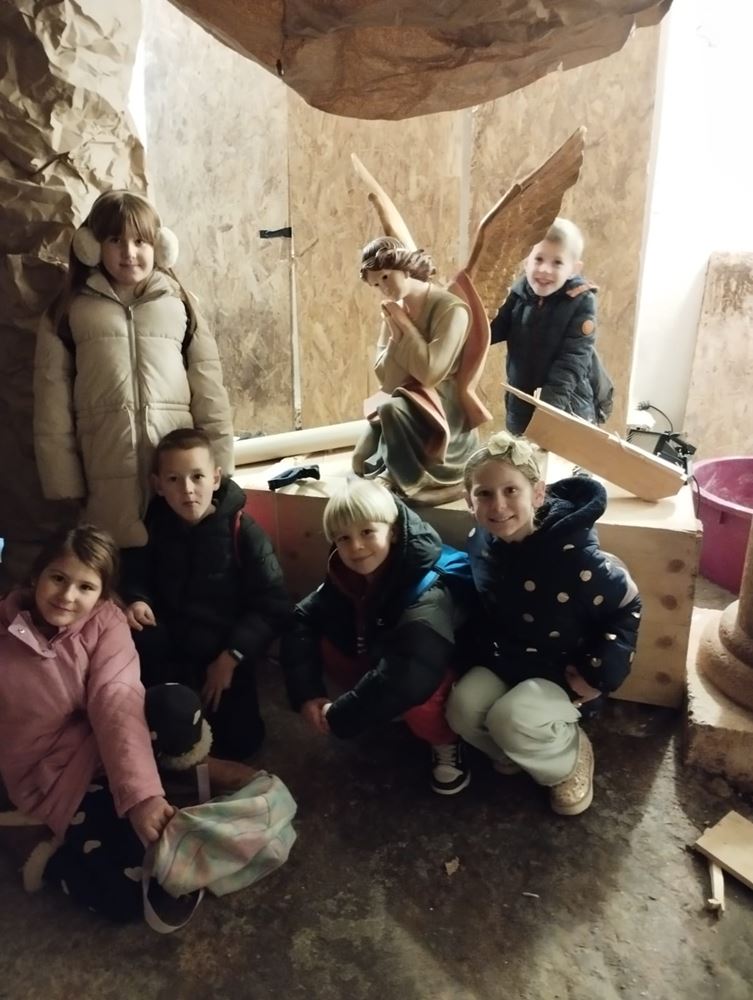 Priželjkivali smo da vidimo jaslice, ali prerano smo došli, pa smo vidjeli samo pripreme. Znatiželjna dječica pitala su mnogo, a kapelan im je strpljivo odgovarao.