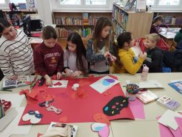 LJUBAV POD MASKAMA / Valentinovo, Dan zaljubljenih koji se obilježava 14. veljače, učenici 2. i 3. razreda područne škole u Kalima zajedno s učiteljicama - Ines Kolega i Marija Bobić Vlajnić te vjeroučiteljicom Ivanom Zrilić odlučili su proslaviti u Narodnoj knjižnici Kali u ugodnom društvu s knjžničarkom Tomislavom Radović.