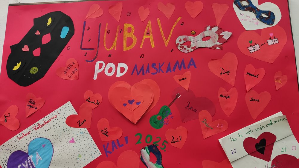 Šale i dječji smijeh pratili su daljnji rad - izradu kolaž plakata na temu Valentinova s naslovom "Ljubav pod maskama", a na kraju smo od veselja i zaplesali. Djeci je to bio tek uvod u vikend feštu uz mašakaranu povorku koja je našim mjestom prodefilirala u petak i subotu popodne tijekom manifestacije - Kualjske maškare 2025.