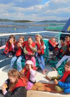Radnici su demonstrirali hranjenje riba u kavezima što je djecu osobito razveselilo. Po povratku u luku upoznali su nas i s procesom kojim riba iz kaveza dolazi do tvornice.
