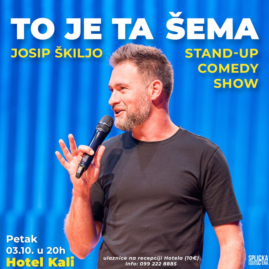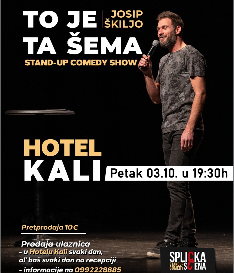 U petak, 3. listopada u 19:30 na crvenoj pozornici Hotela Kali nastupit će stand up komičar Josip Škiljo sa svojim stand-up comedy show-om 'To je ta šema'.
